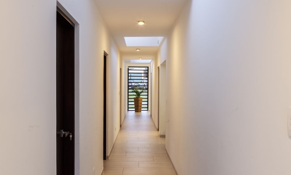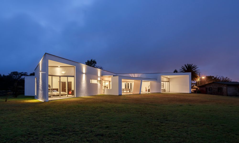La relación hacia el exterior se da fundamentalmente en torno al porche al cual convergen el comedor, la cocina y el estar, así como por los vaciados en los extremos del volumen. La luz juega un papel fundamental, la extrusión y vaciado de tres lucernarios en el pasillo tienen un papel protagónico, su orientación varía entre este y oeste generando una condición cambiante en la iluminación.