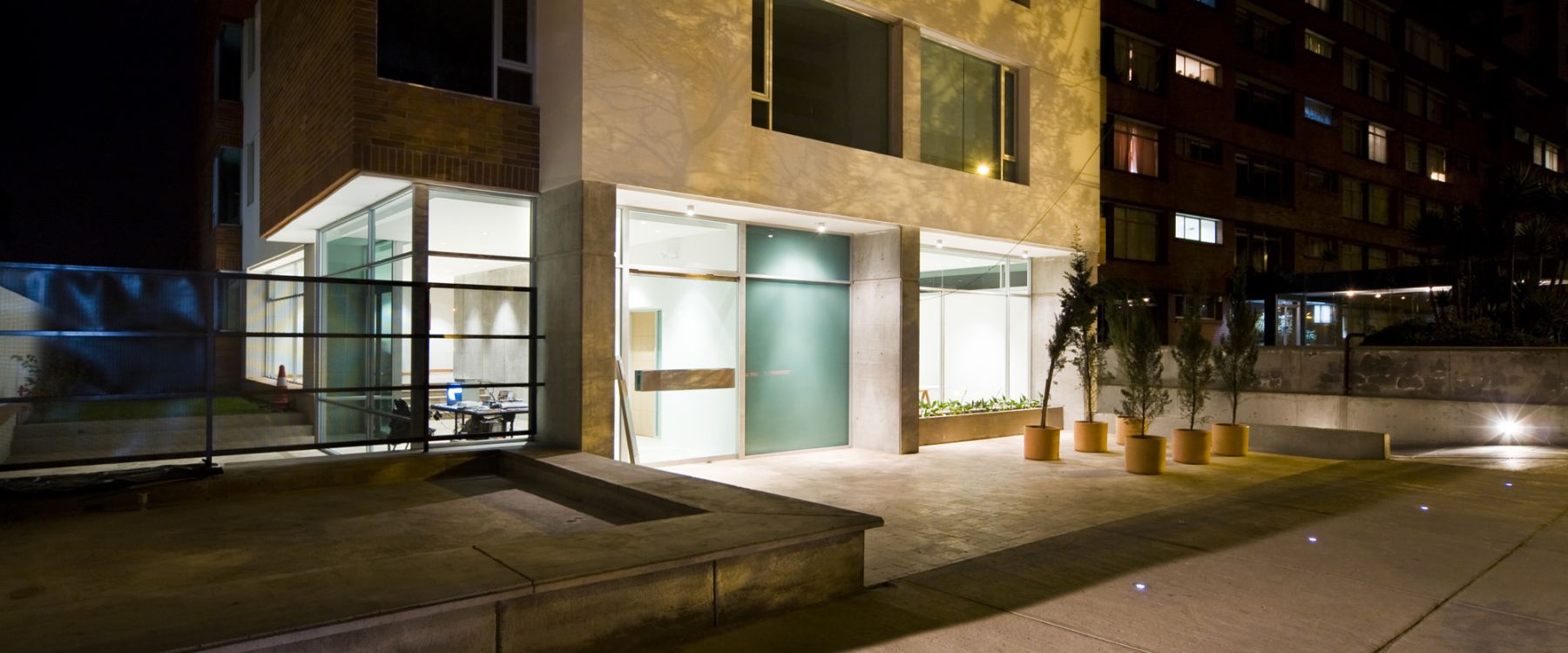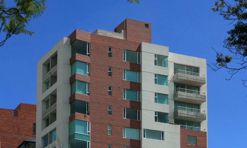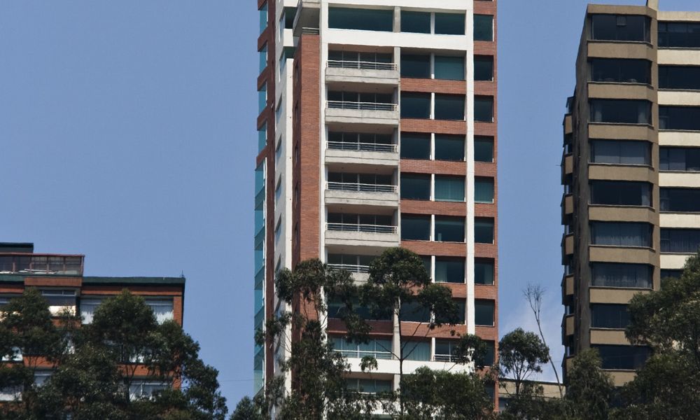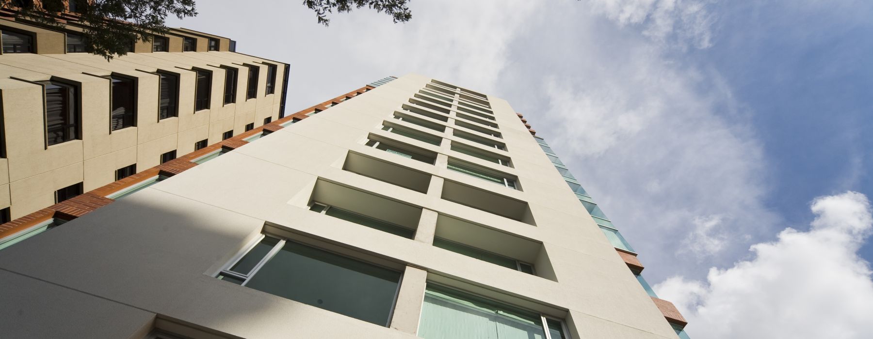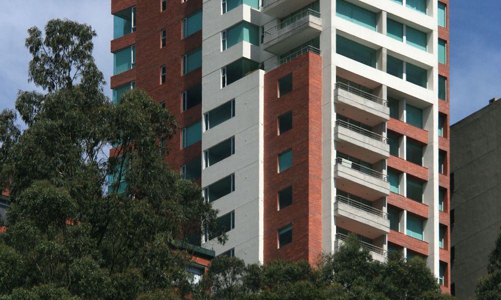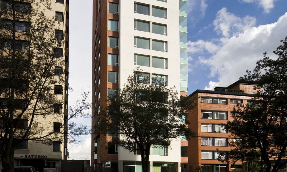 Edificio de 16 plantas ubicado en el borde urbano de la ciudad.